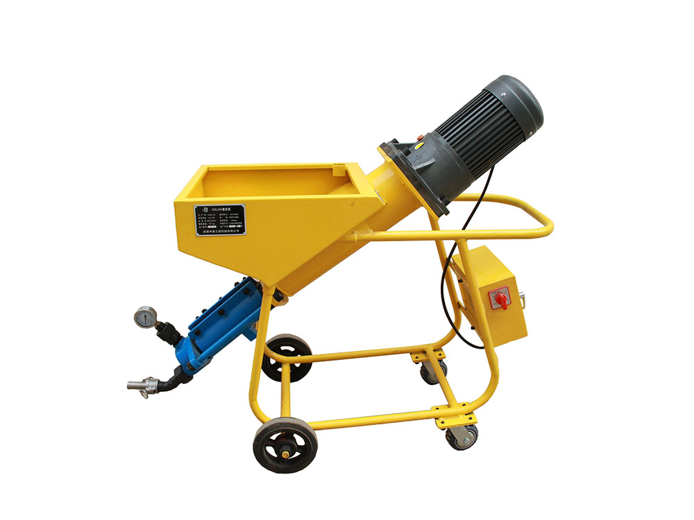 本機結構新穎、構思獨特;避免了灌注稠漿較困難的不足,使用安全、方便、效率高。本機由電動機、減速器、料斗、增壓定子總成、注漿管和電氣系統等組成。當用于濕噴時,還包括噴射器和空壓機(用戶可選配),其特點如下: