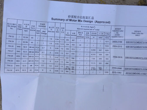 近日,蘇丹羅塞雷斯電站施工方傳回信息,對我公司生產的GS20E灌漿泵在電站大壩加固灌漿施工中,全面達到設計施工要求予以充分的肯定。下圖為大壩加固灌漿施工及沙漿配比單。